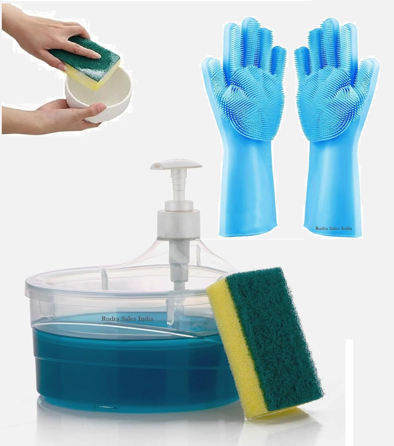 3-in-1 Functionality: Combines liquid soap dispenser, hand wash compartment, and sponge holder in one compact unit. Perfect for efficient cleaning in kitchens, bathrooms, and more.