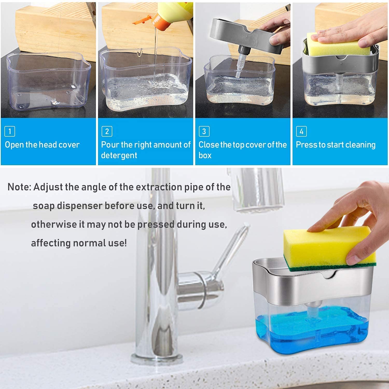 Easy To Store – 2 in 1 soap dispenser sponge holder, dishwashing liquid dispenser for kitchen, dish wash soap liquid dispenser