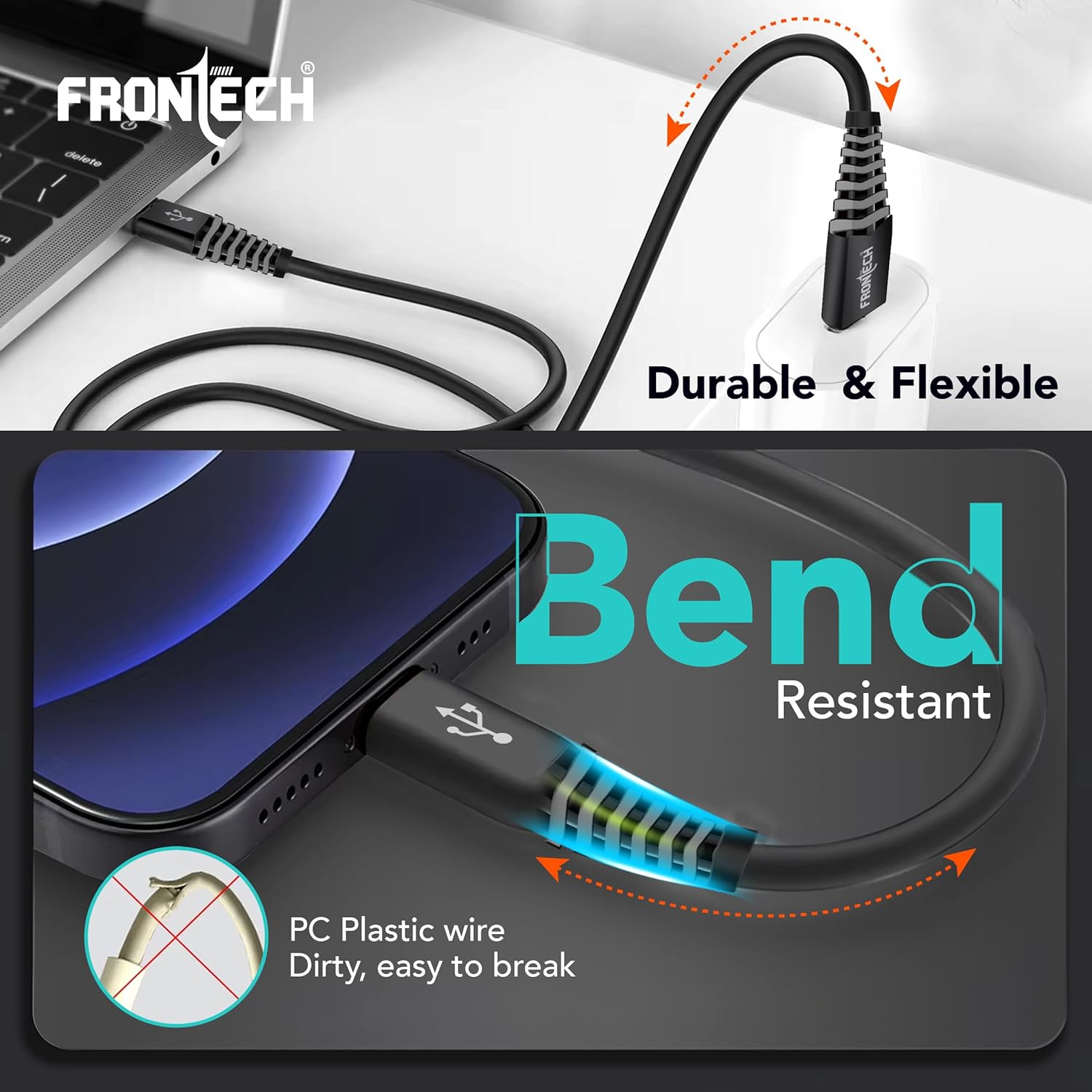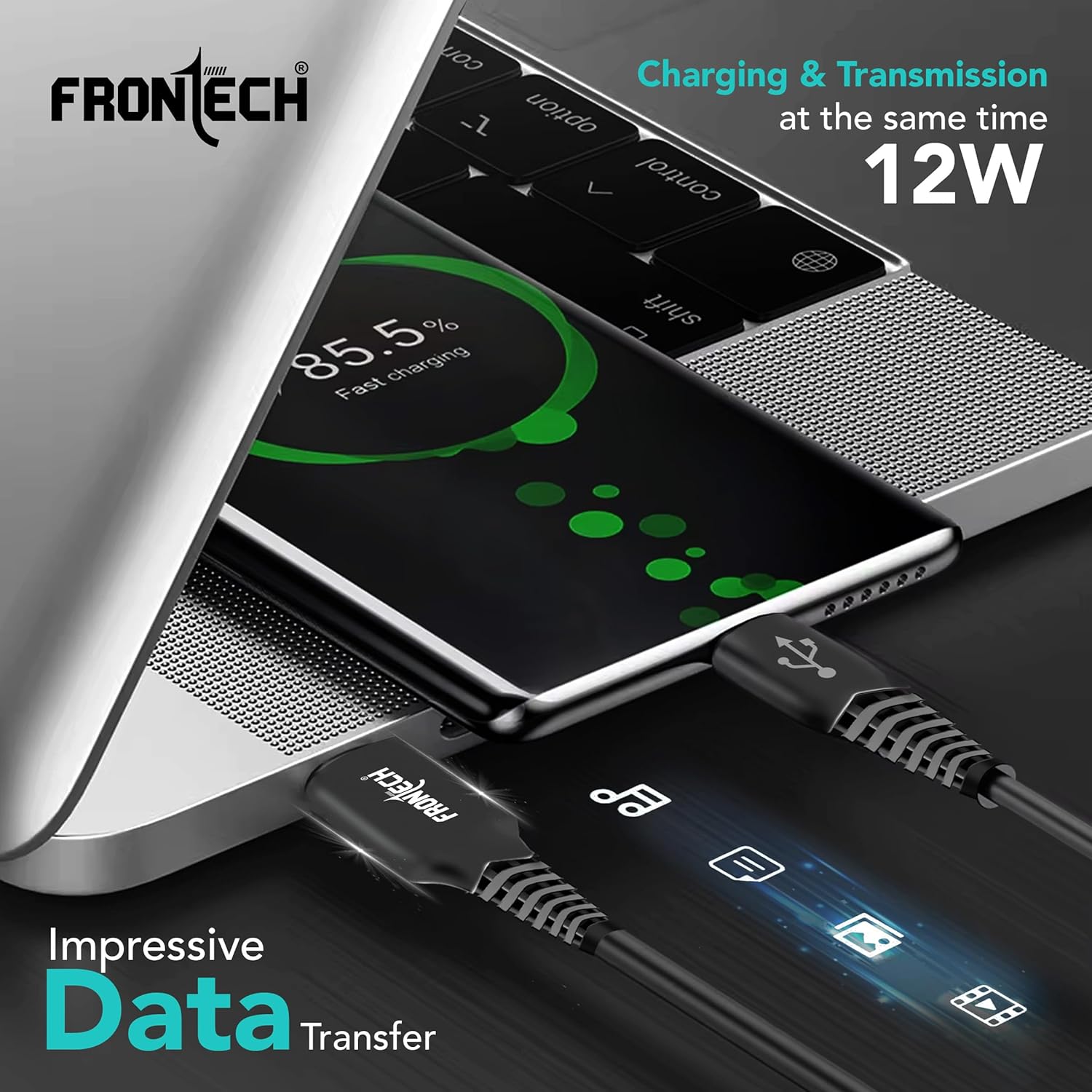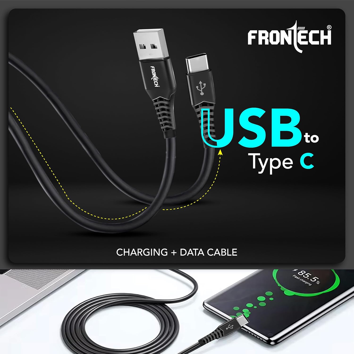 FRONTECH 12W / 2.4A Super Fast Charging 1M PVC USB to Type-C Data Cable for Smartphones, Tablets, Laptops & other Micro USB V8 Devices, Charging and Data Sync (1023 – Black)