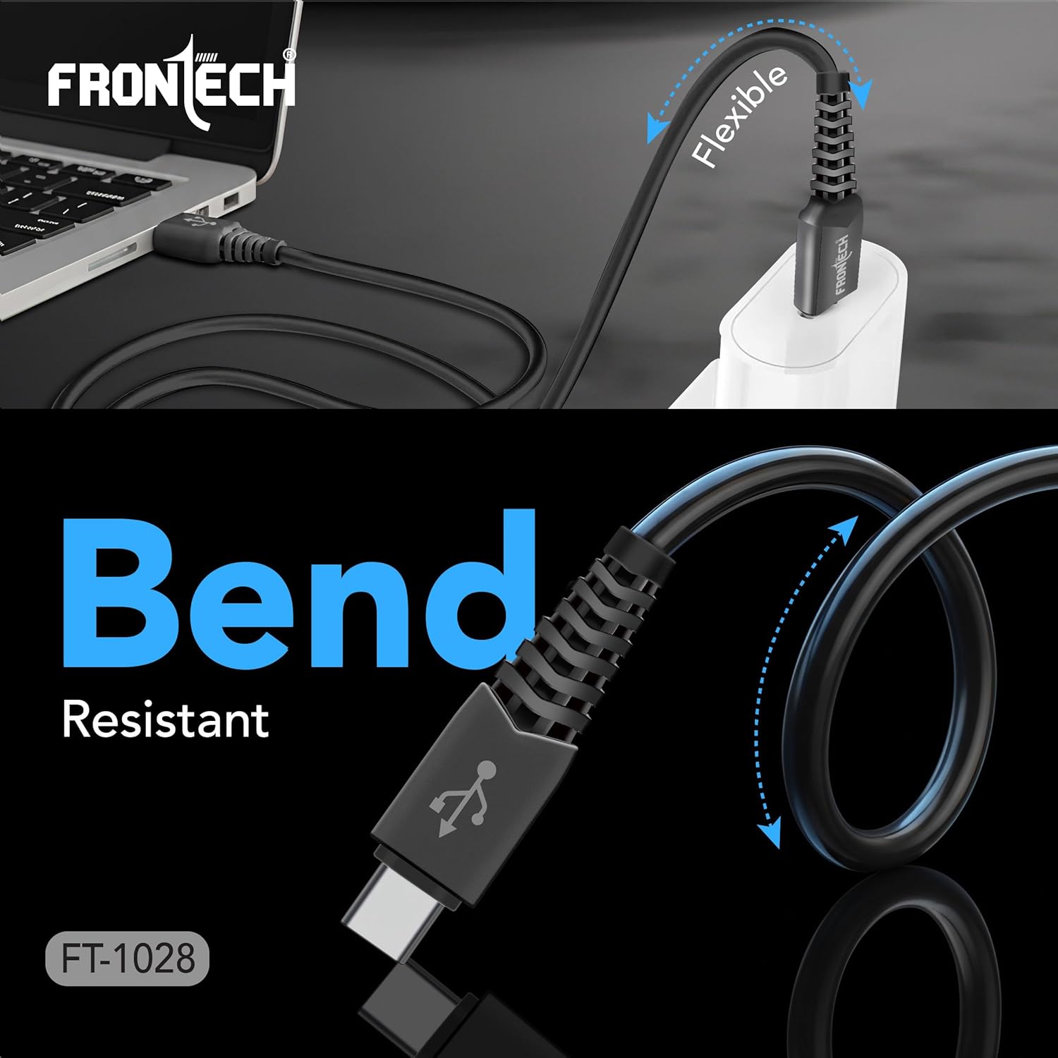 FRONTECH 17W / 3.4A Super Fast Charging 1M PVC USB to Type-C Data Cable for Smartphones, Tablets, Laptops & other Micro USB V8 Devices, Charging and Data Sync (1028 – Black)