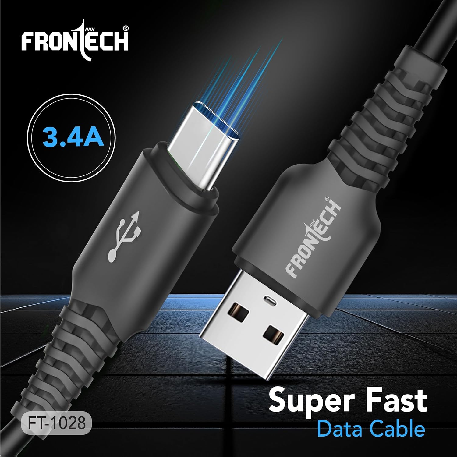 The Frontech data cable has a compact connector that seamlessly fits most Android smartphones, windows phones, tablets, PC peripherals, Bluetooth speakers, power banks, game consoles, cameras, hard drives, and other USB-enabled devices. This high-quality cable ensures fast charging at 17W/3.4 A and data transmissions with rapid sync at 480 Mbps. Its braided skin makes it tough and durable, lasting six times longer than other cables. This Type-C PVC cable is the perfect length for a smooth and hassle-free user experience at 1 meter.