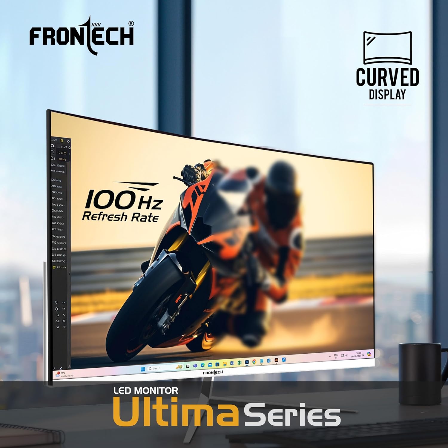 FRONTECH 22-inch (55.88cm), LED, FHD 1920×1080,100Hz, White, 3500R Curved, Bezel Less Design, HDMI & VGA Ports Monitor (MON-0079C)