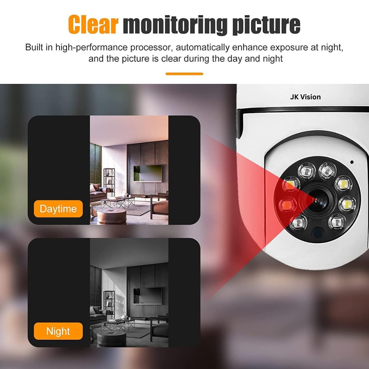 JK Vision Smart WiFi Security Camera 1080P Full HD | 360° Pan 90° Tilt PTZ with Holder | Color Vision | Motion Detection Alert | Multi-User Sharing | Spotlight Function | Indoor CCTV.