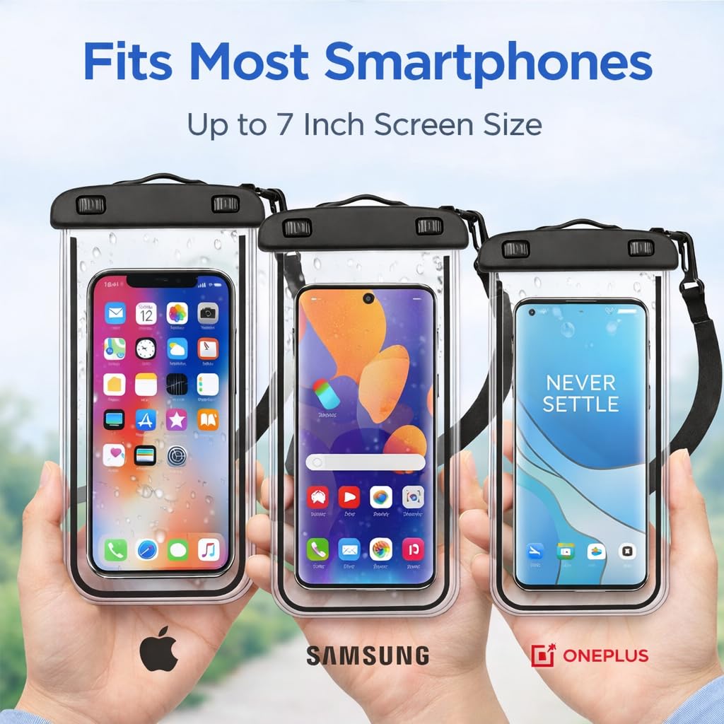 PulGos Waterproof Phone Pouch(Pack of 1) | IPX8 Transparent ๐“๐จ๐ฎ๐œ๐ก๐ฌ๐œ๐ซ๐ž๐ž๐ง Friendly Dry Bag with Lanyard- Secure Lock Phone Cover for iPhone & Android | Enjoy Swimming, Beach & Travel Safely