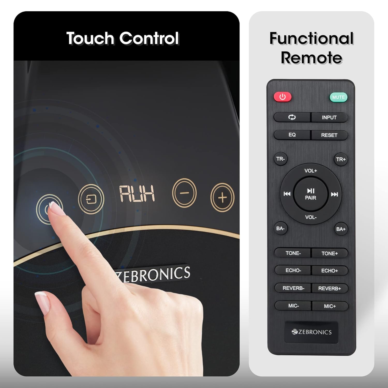 ZEBRONICS Octave Dolby Tower Speaker with 340W RMS Power, Wireless mic, Karaoke, 8” Subwoofer, 3 Way Design, HDMI ARC, Optical, Bluetooth 5.0, LED Display, Touch Panel & Remote Control